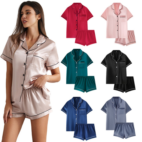طقم بيجامة نسائية ساتان من قطعتين من ODM بأكمام قصيرة وشورت مطابق لملابس النوم النسائية