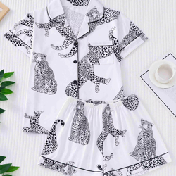 Conjunto de ropa de dormir de mujer Popular europea de alta calidad con estampado de tigre Top de manga corta cómodo para todas las estaciones emparejado con pantalones cortos