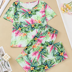 Оптовая продажа, высококачественный Женский пижамный комплект с коротким рукавом и короткими рукавами и короткими шортами, подходит для всех сезонов