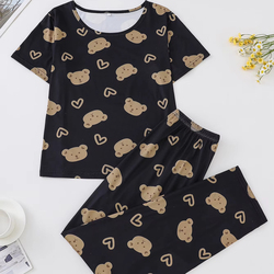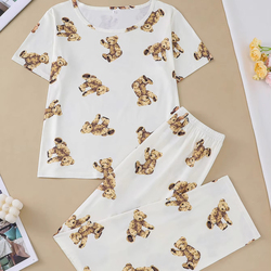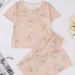 Odm Giản Dị Của Phụ Nữ Pajama Đặt Ngắn Tay Quần Short Nhà Mặc Động Vật In Với Túi Phù Hợp Cho Tất Cả Các Mùa