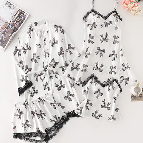 Tùy Chỉnh Của Phụ Nữ Thanh Lịch Ngủ Đặt Bốn Mảnh Ren V Cổ Treo Và Áo Ngủ Dệt Vải Cho Mùa Hè